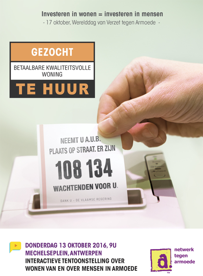 De Antwerpse verenigingen waar armen het woord nemen en STA-AN maakten een interactieve tentoonstelling over de grote Antwerpse woonproblematiek. Voor de uitwerking kregen ze hulp van het Ministerie van Fantasiebevordering. Mensen in armoede brengen in beeld hoe het is om in een slecht… Lees verder »interactieve tentoonstelling over wonen, van en over mensen in armoede